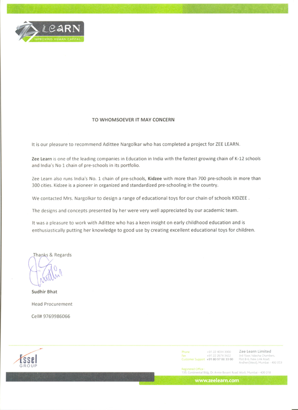 We at Blooming Tree Pre-school have implemented the curriculum set byAdittee Nargolkar. We find the curriculum is planned keeping in mind each and every aspect of a child’s development. Each topic/project has been covered extensively with various worksheets, art and craft samples, indoor games, rhymes and stories which have helped in reinforcing the project. We find the curriculum to be appropriate and highly beneficial for the children of pre-primary. Thanking you, Anupriya Nikam Blooming Tree, Pune